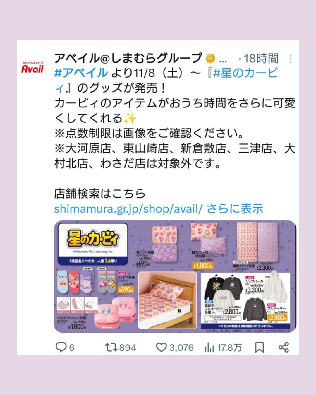 最新のアベイル×カービィ情報を逃さないように✨