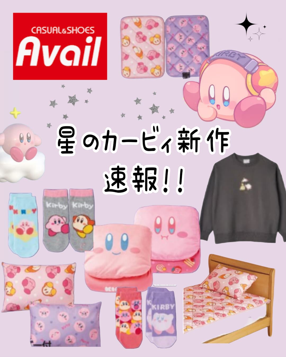 アベイル カービィ 2025 / 星のカービィ コラボ / アベイル 星のカービィ グッズ / アベイル カービィ パーカー / アベイル カービィ 寝具 / カービィ ソックス