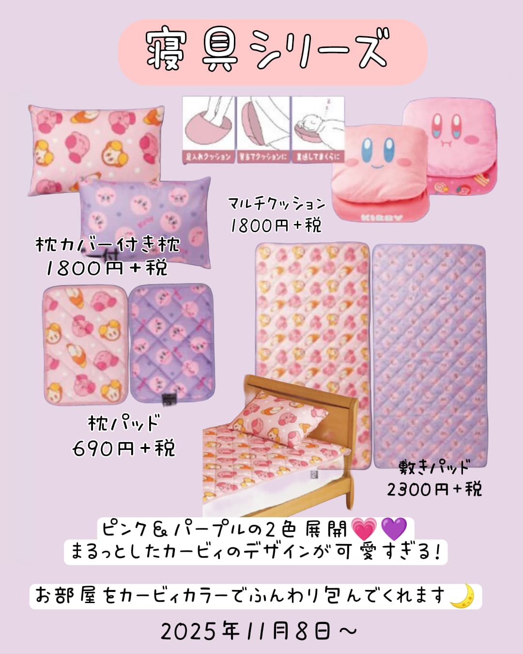 🛏️ 寝具シリーズ(ピンク&パープルの2色展開)