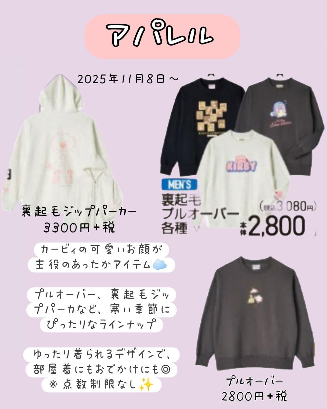 デザイン違いのプルオーバーなど、あったか可愛いカービィウェアが登場🩷