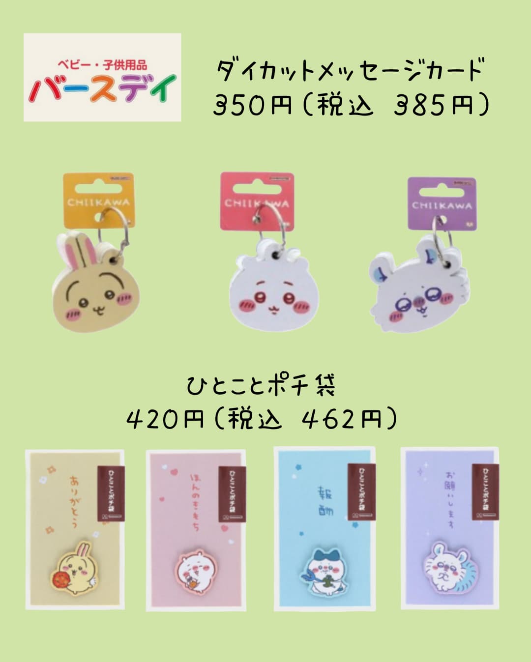 バースディでは、ちいかわデザインの ダイカットメッセージカード や ポチ袋 も登場🎀