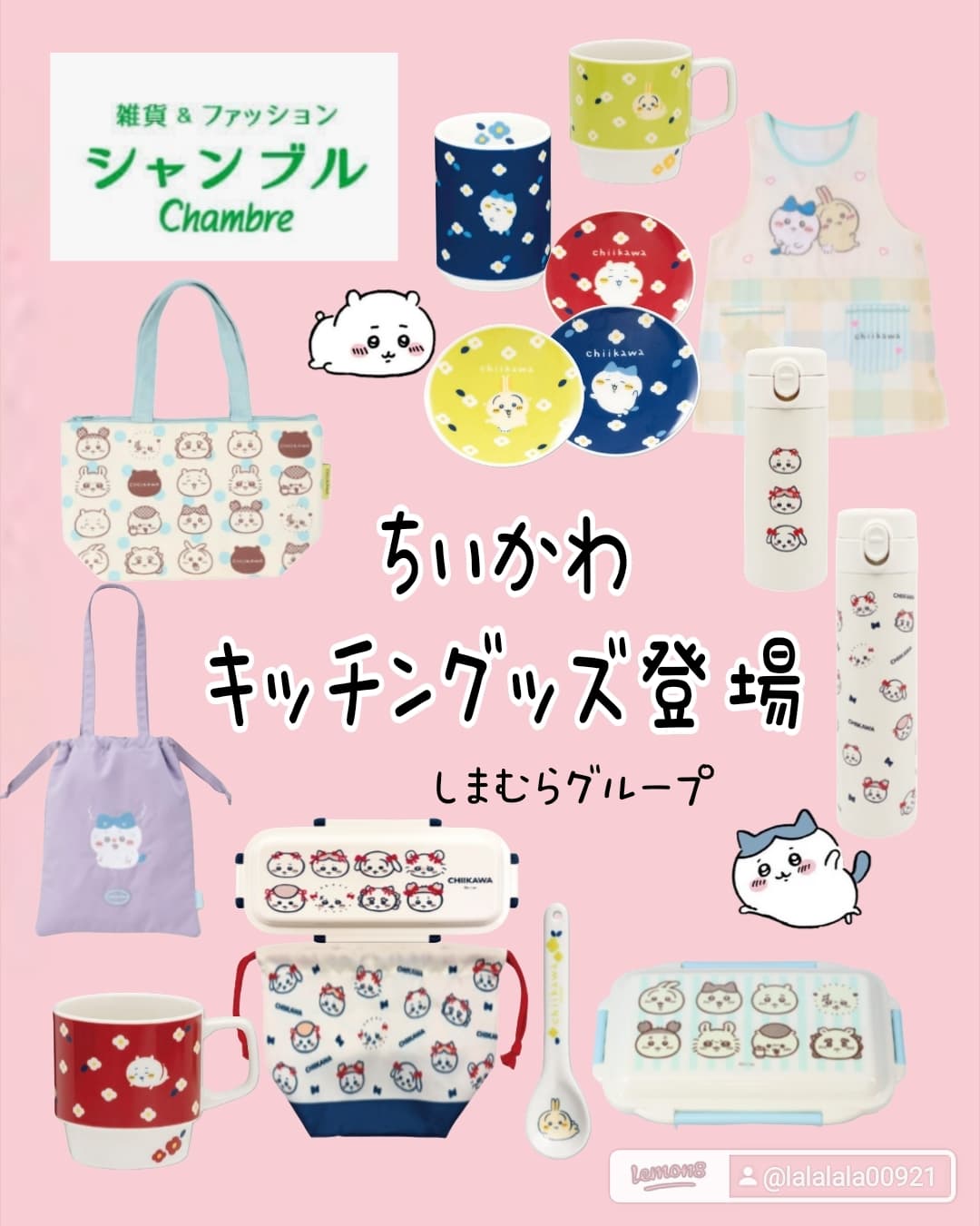 #しまむら #シャンブル #ちいかわ #シャンブルちいかわ #しまむらちいかわ #キッチングッズ #お弁当グッズ #ランチシリーズ #トートバッグ #エプロン #食器 #Chambre #Chiikawa