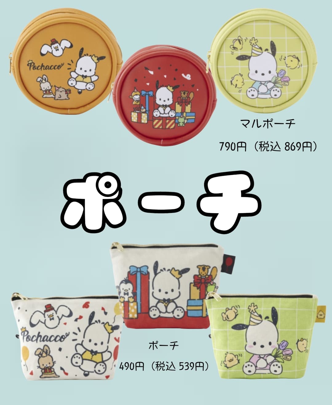 大人気ポチャッコから丸ポーチ&マチ付きポーチが登場。