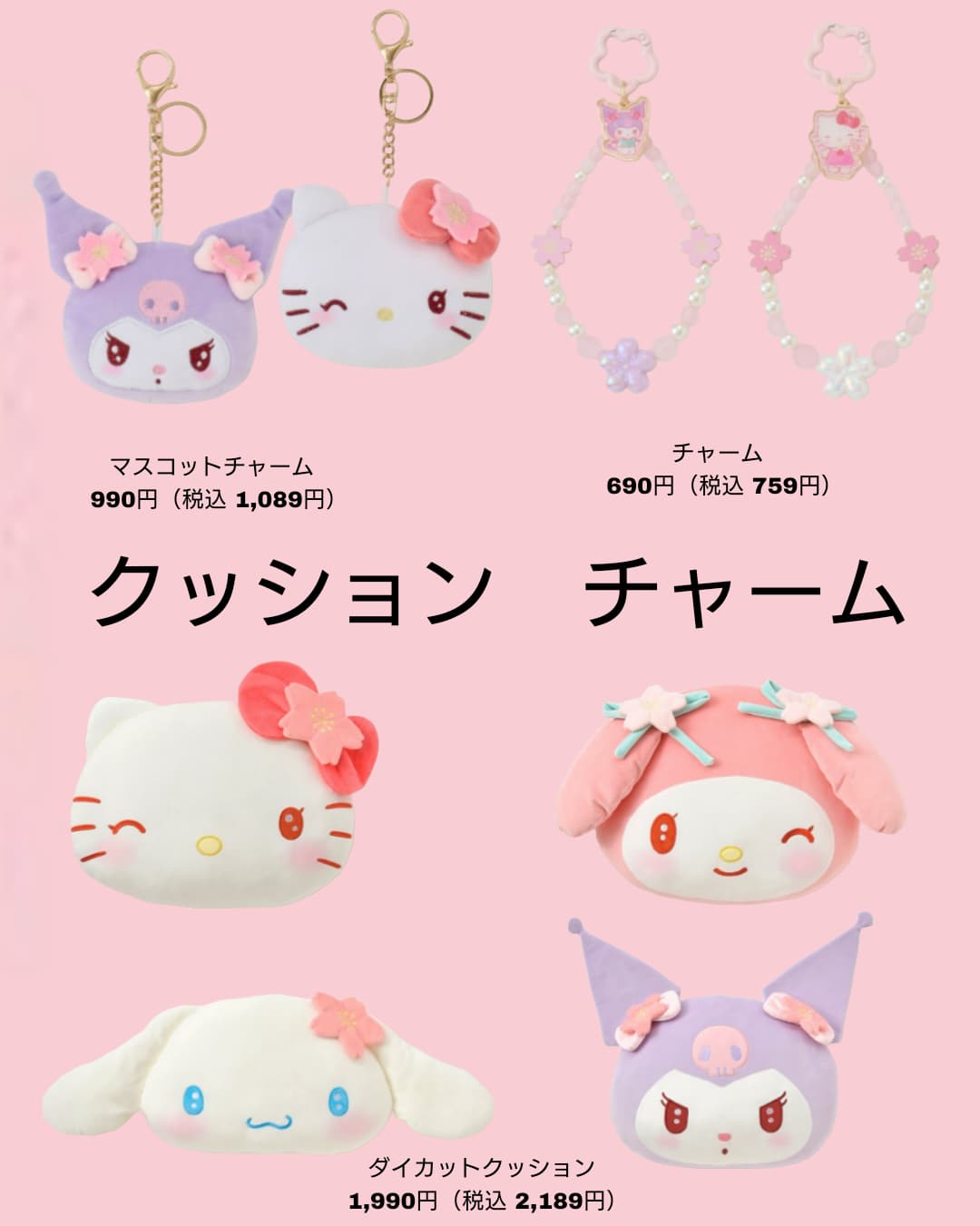 マイメロディ・クロミ・ハローキティ・ポムポムプリンの展開。